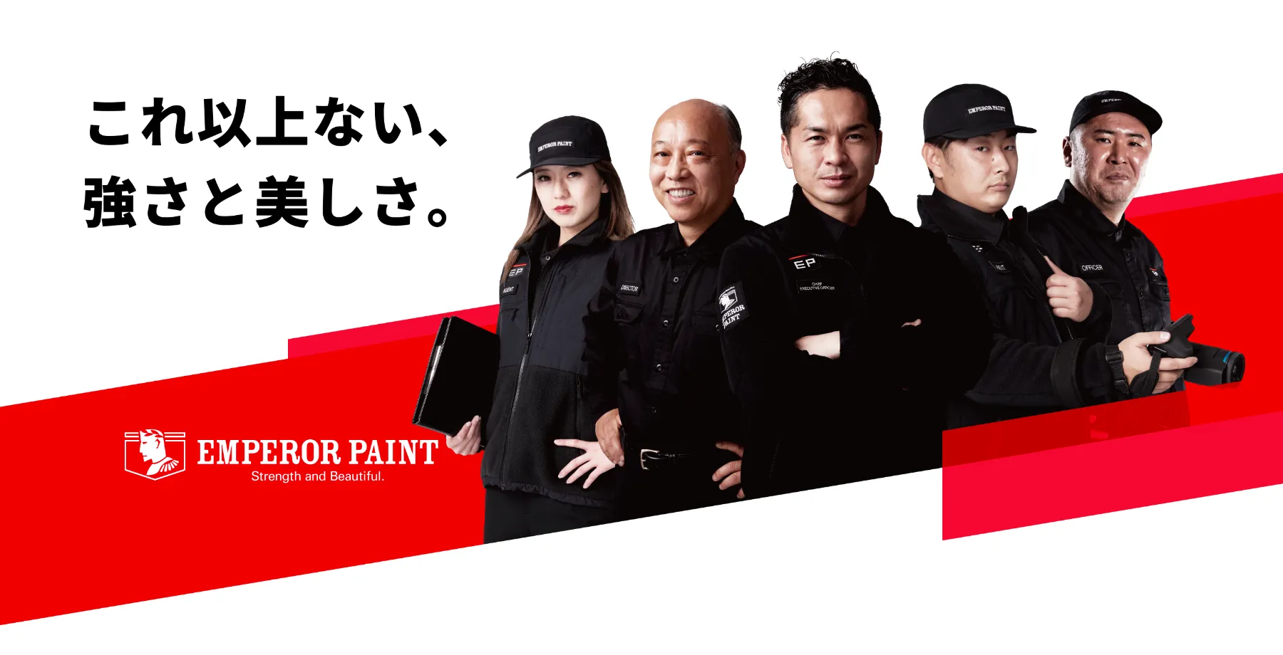 エンペラーペイントのスタッフは全員が訓練されたスペシャル・フォースです。 「お客さまへの想い」だけではなく、実際に「力」となる専門知識とプロデュース力で、 お客さまのライフステージに最適な修繕プランをご提案いたします。