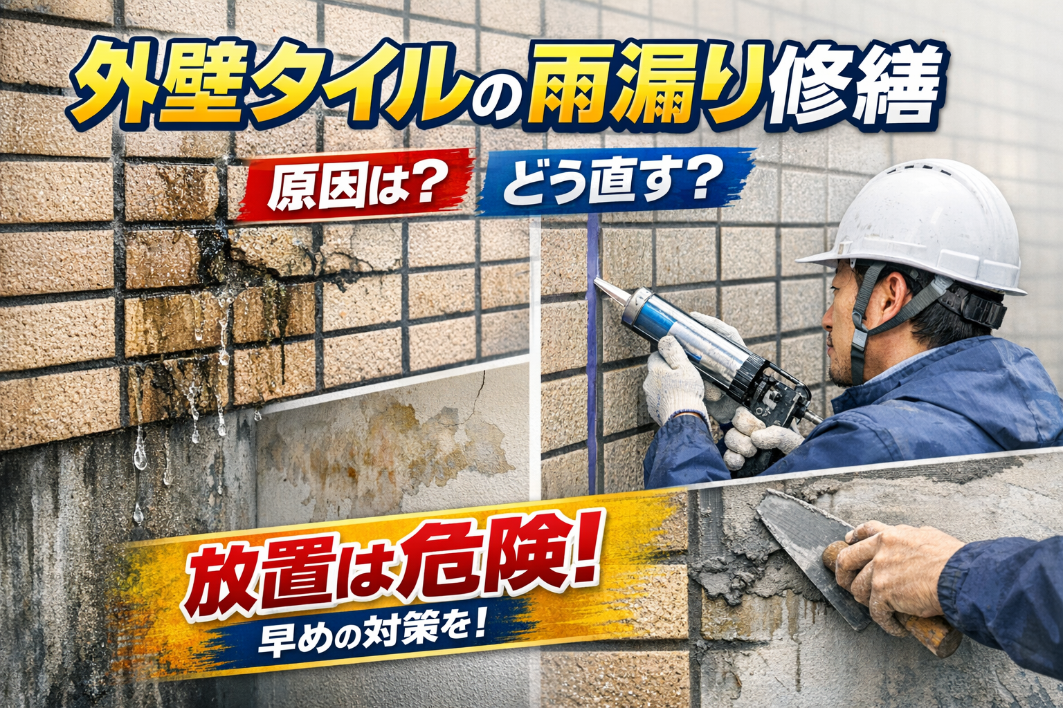 伸縮率300%塗膜による雨もり修繕とは?外壁タイルの雨もり修繕🔍